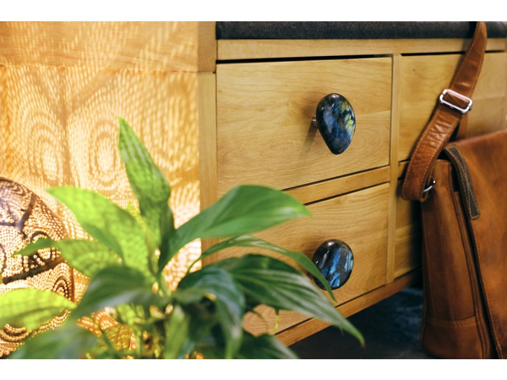 Labradorit je nádherný minerál šedočerné barvy s výraznými odlesky v tónech modrozelených a zlatých. Labradorit je v podobě leštěných valounů. Patří mezi naše největší oblíbence.